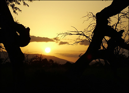An odd, strange place where a game of croquet is played with flamingos and hedgehogs. Beg, steal borrow a croquet set.  Decorate with model flamingos, again drawings (for distant flamingos) as well as bizarre animals to decorate the croquet ground.