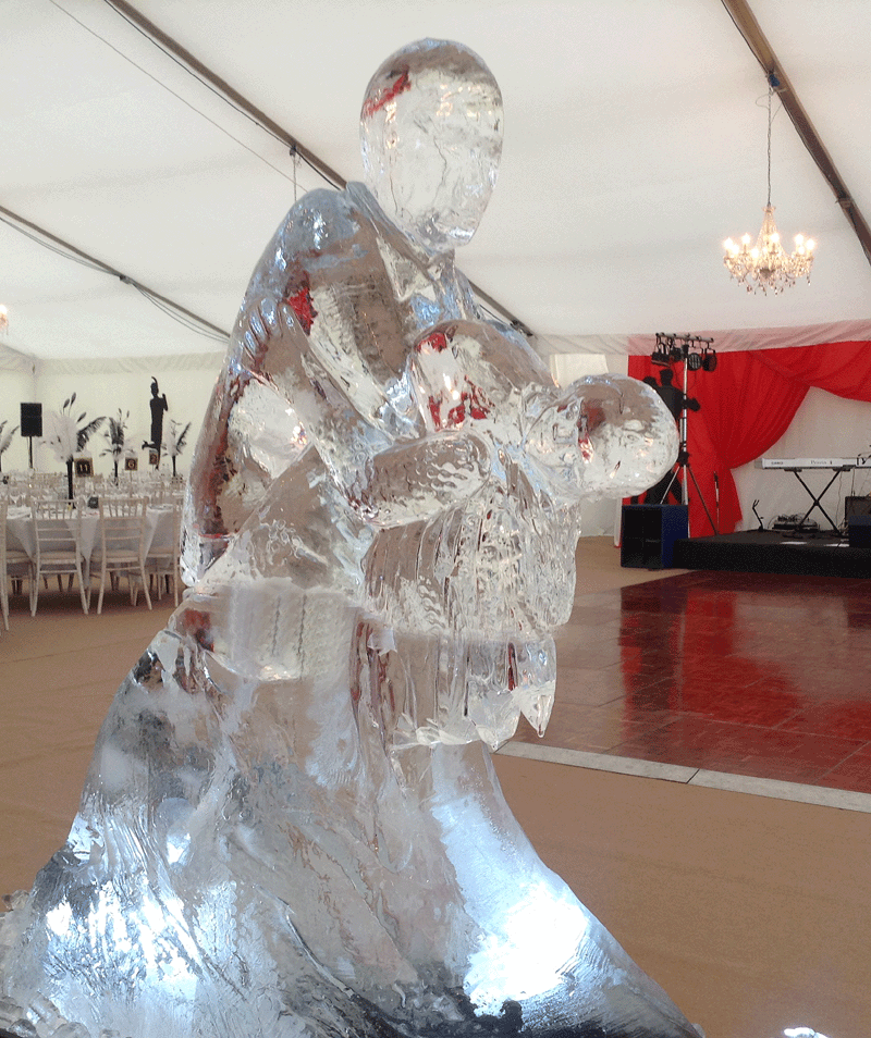 "Yes" was our answer. Umpteen hours later a two-ice block piece emerged of the two dancers in an embrace carved and ready to grace the dance floor. The detail of the piece right down to the finger nails was incredible and stunning.