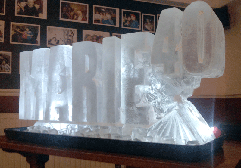 We created quite a few scenarios for Marie. Being a Manager of a (beautiful) Pub, all her clientele and friends (obviously) knew her name and her forth coming 40th Birthtday. Being a bubbly and gregarious person, instead of selecting a bird, an animal or even an object - Marie chose to have her name immortalized in ice - along with her birthday number - just to make sure everyone knew!