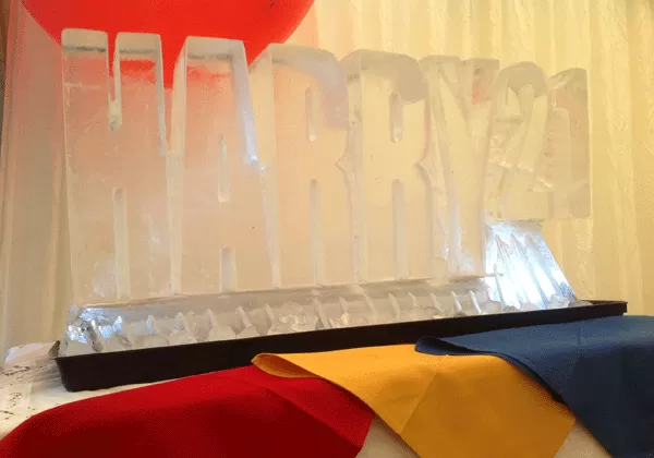 Harry is a real party-animal.  He wanted to celebrate his 21st birthday in style and have an unforgettable birthday bash.  He hired from Passion for Cocktails two Professional Flair Mixologists, a Cocktail bar and sundry items; from Passion for Ice he wanted a Vodka Luge - big and bold.  Being Harry, it was an easy chocie;  his name in big bold letters and a "21" to tell everyone he had come of age.  The party started (like most 21 year-old parties) quite late.  The Cokctail bar and the Vodka Luge were a great hit and were used well into the night and (of course) the early hours of the next morning.  As the say, you're only 21 once - make the most of it!  Harry and his friends did.