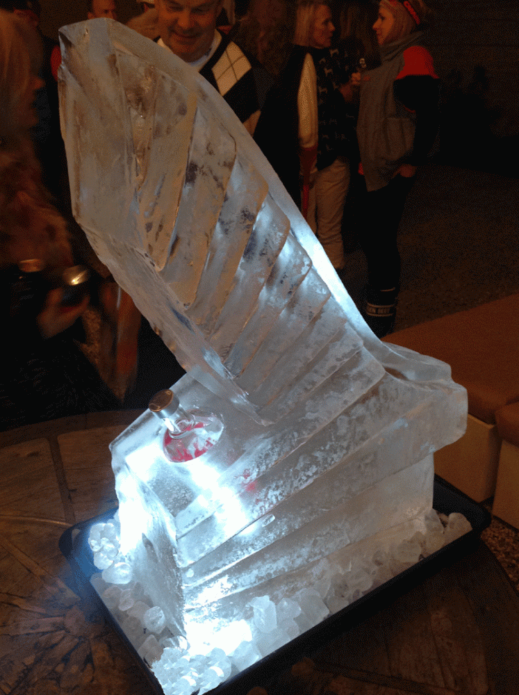 There are ski jumps and then there are Ski Jumps with a difference - this one is a tad different. One of the challenges with any Vodka Luge is how to keep the Vodka as cold possible (or any other drink come to that). With this Ski Jump Vodka Lugewe carved out a small bottle holder at the back - just the right shape and size for a Vodka Bottle.